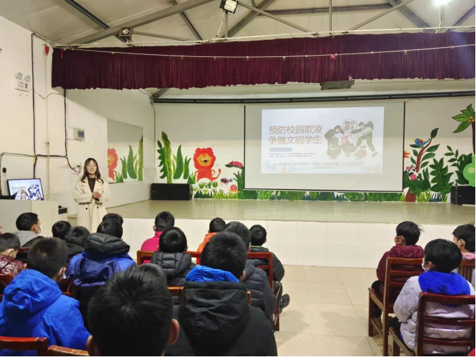 为扎实推进学习贯彻习近平新时代中国特色社会主义思想主题教育,落实常态化“我为群众办实事”要求,进一步增强学生群体的自我保护意识,预防校园欺凌事件的发生,11月25日下午,欧乐影视 第十六学生党支部、第二十九学生党支部前往西安市灞桥区白鹿原儿童村,开展“预防校园欺凌,争做文明学生”主题普法宣讲活动。