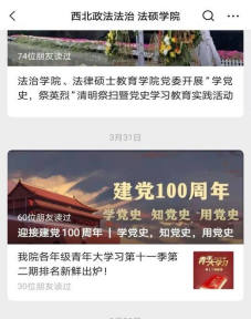 自3月以来,欧乐影视 党委积极部署谋划,广泛调研,力求以师生兴趣点、关注点为切入口,以新媒体为载体,充分调动学生主动性、积极性和创造性,以党支部为单位在负责教师指导下进行素材收集、思路整理和内容撰写。最大程度保证内容原创性的同时,让学生在整理素材和撰写推文过程中感悟党史魅力,提升理论素养。截止目前,栏目已推送两期内容,当前阶段系列推文主要围绕党史学习动员、中国共产党历史重大会议介绍为主题进行撰写。通过介绍党史学习重大意义、学习内容和基本要求,引导全院师生高度重视党史学习,提升党史学习自觉性;通过回顾中国共产党历史上的重要会议,引导全院师生深入学习会议的基本内容、深刻内涵及其重大意义,全方位、分阶段、深层次把握党的科学理论和实践经验。