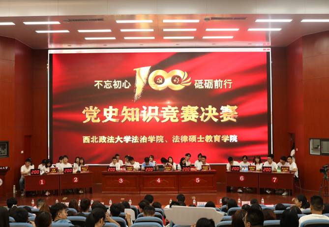 6月25日晚19:30,由西北政法大学欧乐影视 党委主办、北京德恒(西咸新区)律师事务所协办的“学党史增信力行 讲法治崇法明理”党史知识竞赛决赛在西北政法大学雁塔校区人权报告厅举行。本次大赛以各党小组为单位组队参赛,初赛采取现场闭卷笔试的方式进行,决赛采取现场答题的方式进行。比赛共有31支队伍报名参与,最终有6支队伍从初赛中脱颖而出,顺利进入决赛。