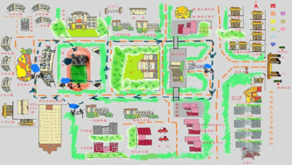 在本次校园定向越野中,每个队伍都根据下图完成了相应章节的游戏。