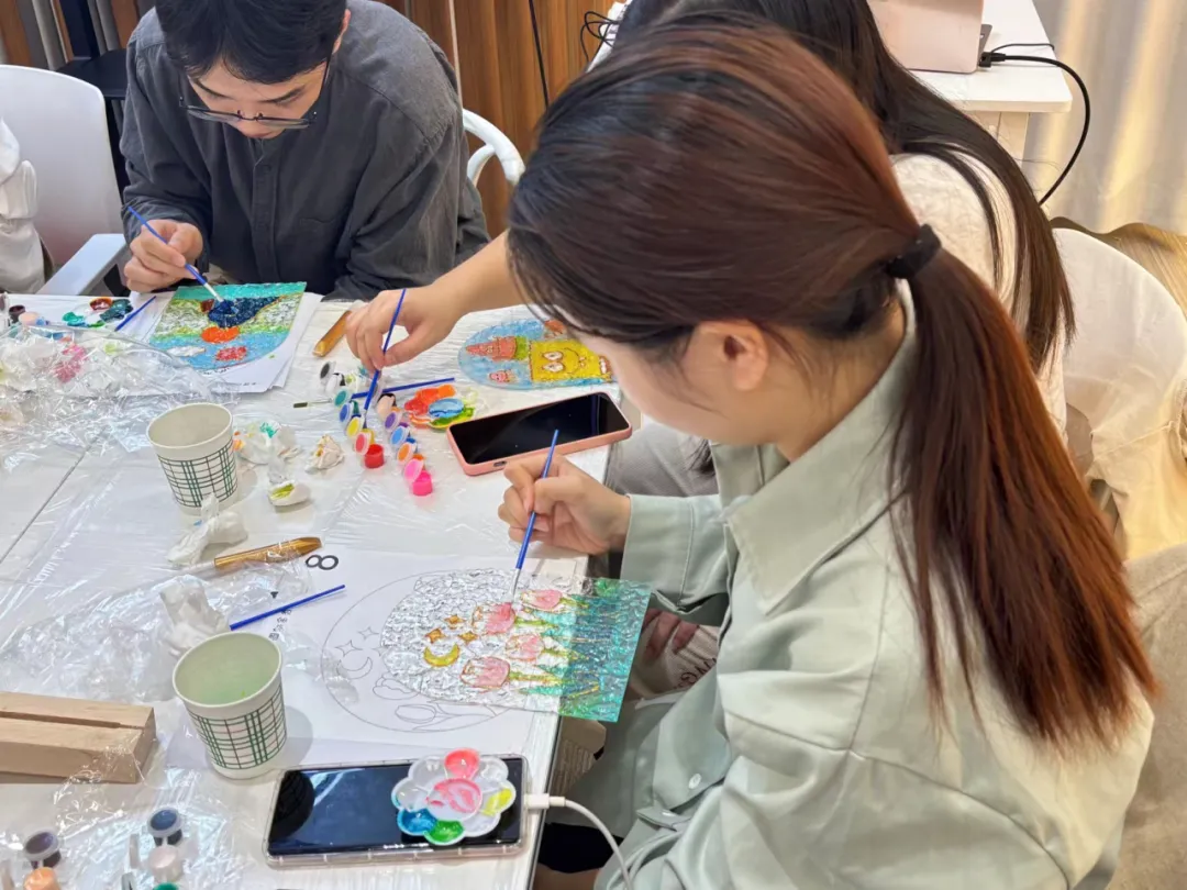 10月7日,学院策划了“追光而遇,与光同行”壁画夜灯主题活动,同学们在专业老师的帮助下制作玻璃画小夜灯,感受艺术氛围的同时展现爱国热情。晓明老师对同学们进行制作工序的细致讲解和实践指导,鼓励大家自由创作,同学们在认真完成作品后纷纷拍照留念。