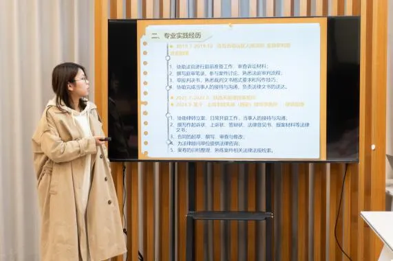 在比赛过程中,选手们通过PPT展示的形式,详细阐述了自己的职业规划,包括职业目标、实现路径、所需技能和个人优势等,充分展现了当代青年的职业理想与抱负。选手们依次展示后,评委老师们对每位选手的规划进行了细致的点评,并给出了宝贵的建议。金彦宇老师强调,职业规划比赛要在个人简历突出职业重点以彰显个人特色,并指出希望从事律师行业的同学们可以从“法律+”入手,多方面发展个人能力,以在求职过程中获得更有力的竞争地位。
