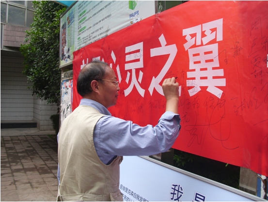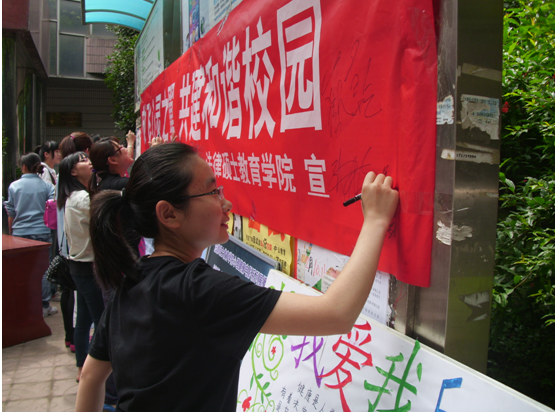 下午三点,由欧乐影视 组织,在欧乐影视 办公楼前举行了“放飞心灵之翼,共建和谐校园”的大型师生签名活动。活动现场气氛热烈。学院老师们纷纷签名,同学们也是积极响应,踊跃参与,表示要以积极的心态迎接学习、生活中的各种挑战。同时,由学生会生活部的同学为大家发放心理健康小知识宣传材料。