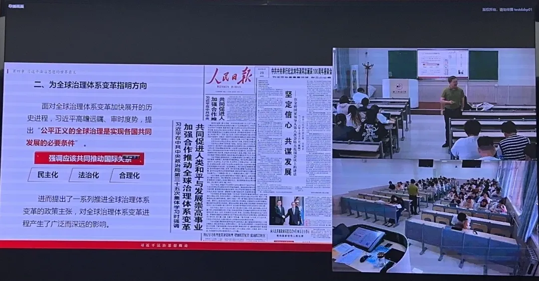 与会人员对学院承担教学任务的2门法学专业必修课(《习近平法治思想概论》《法律职业伦理》)的4个课堂(zb1140001.06、zb1140001.10、zb1140007.02、zb1140007.10)开展看课、听课、评课、研课。