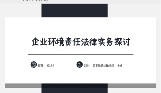 2023427日下午,西安铁路运输法院冯悦法官以《企业环境责任法律实务探讨》为主题的讲座在我校顺利举行,讲座地点位于雁塔校区三号教学楼506教室,参会人员有本学期选修企业环境法律实务课程的同学以及我校环境法方向研究生,会议由李雅萍老师主持。