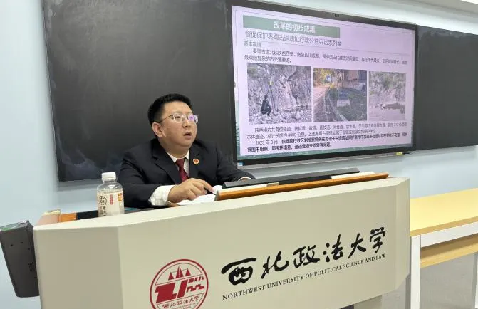 法治讲堂第三十四期在雁塔校区3号教学楼3605教室顺利开展。讲座邀请陕西省人民检察院西安铁路运输分院派驻陕北高原检察院生态环境检察工作指导组组长王永亮作了主题为《我国生态环境检察探索历程的回顾与思考》的法律实务讲座,陕西省陕北高原地区人民检察院分党组书记、检察长南崇敬参加与谈,主讲《企业环境责任法律实务》的经济法学院李雅萍老师主持。