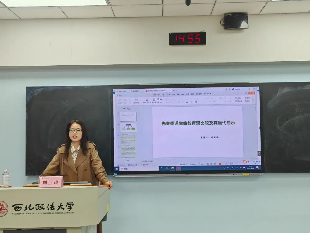 在雁塔校区3号教学楼3506教室举办“先秦儒道生命观比较及其当代启示”主题讲座。讲座由马克思主义学院教授刘亚玲老师主讲,辅导员郝源主持讲座。