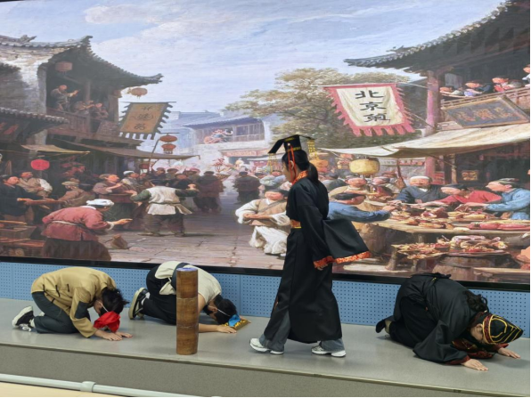 商鞅变法队的《徙木立信:一木十金定秦法》重现历史场景,深刻诠释了诚信对于法治推行的关键意义。