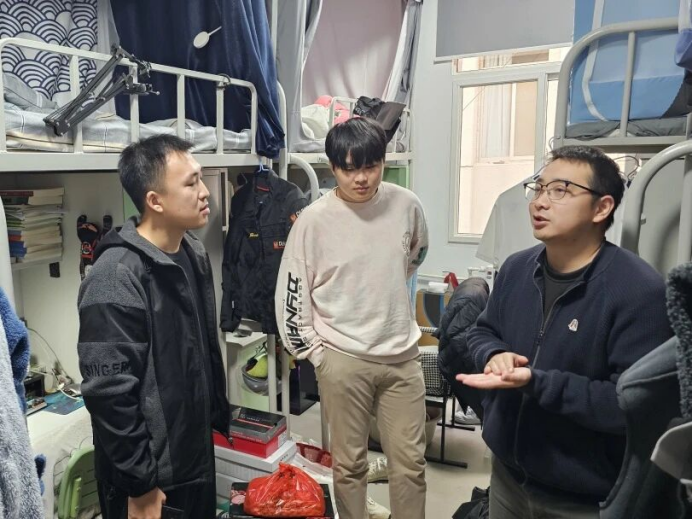 走访中,各辅导员以“全覆盖、无死角”为原则,重点排查违章电器、宿舍吸烟等安全隐患,针对发现的问题督促学生立行立改;仔细甄别消防设施完好度,即时清理消防通道障碍物,确保设施可用、通道畅行。此外,辅导员还与学生逐一谈心交流,耐心倾听学生诉求,现场科普消防安全知识,将安全教育与人文关怀深度融合,切实提升学生的安全责任意识和应急能力。