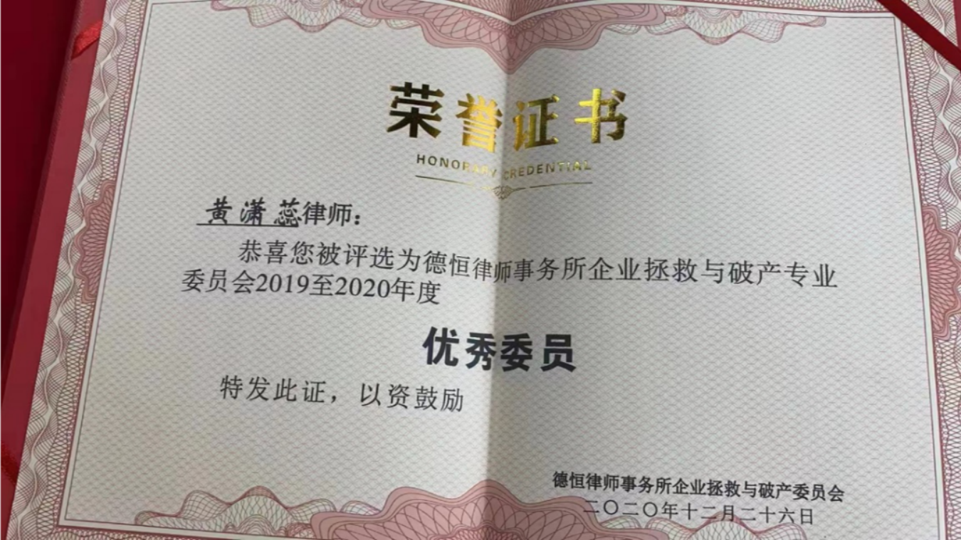 2010年,黄潇蕊开始从事破产重整业务,她回忆道:“我独自一人背着行李跑到四川项目上,懵懵懂懂的走上了从事破产工作的这条路。破产业务中需要从不同维度统计核算几个亿的债权,还得看审计报告、账册、了解上市公司信息披露制度。”当时巨大的工作压力和有限的知识储备,令黄潇蕊感到不安。但是不甘于放弃任何一个机会的她,每天利用自己工作中的碎片时间、下班后休息的时间,从书本上学习财务知识、上市公司知识,跟着北京总部的律师虚心请教,一点点慢慢的成长。积跬步至千里,努力必有所得。