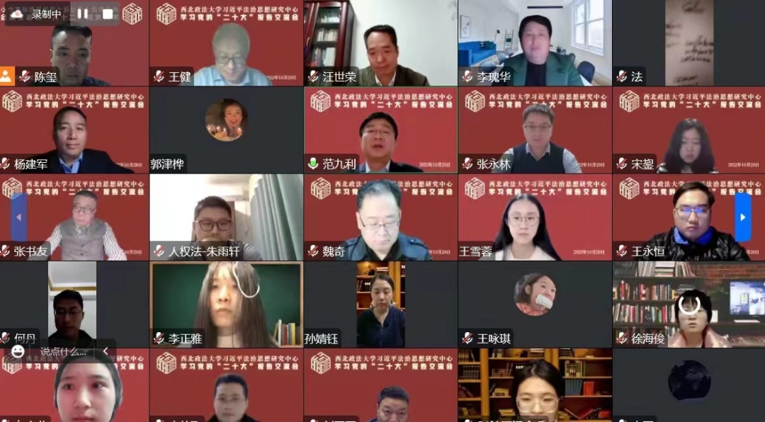 10月29日晚,学校习近平法治思想研究中心召开学习党的二十大报告线上交流会,习近平法治思想研究中心全体成员、学校教师代表以及部分硕士研究生参加会议。校党委副书记、校长,习近平法治思想研究中心主任范九利出席会议并讲话。会议由欧乐影视 院长、习近平法治思想研究中心执行主任陈玺主持。