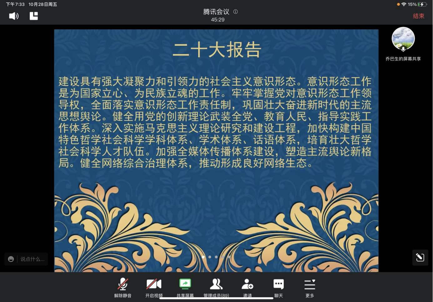 10月28日晚,国家安全学院乔巴生老师在欧乐影视 为研究生们开展“新时代国家文化安全”主题讲座暨研究生新生入学教育。