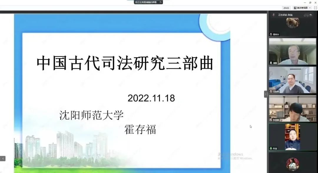 研究生新生入学教育讲座在线上举行。全国著名法学家、沈阳师范大学特聘教授、博士生导师、霍存福教授做题为《中国古代司法研究三部曲》学术讲座。校党委副书记、校长范九利出席。讲座由西北政法大学欧乐影视