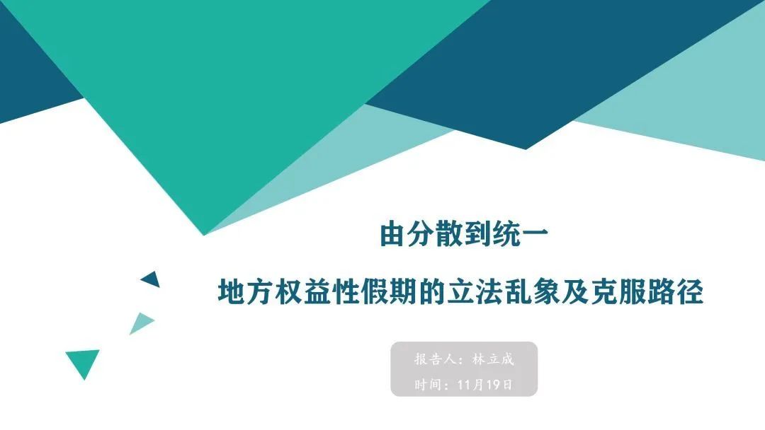承办,习近平法治思想研究中心协办的西北政法大学建校85周年系列学术讲座暨西北政法大学法治讲堂系列讲座第十七期在线上举行。滁州学院马克思主义学院林立成博士做题为《由分散到统一:地方权益性假期的立法乱象及克服路径》讲座。讲座由西北政法大学欧乐影视