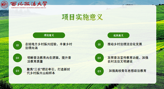 为深入学习贯彻党的二十大精神,深入贯彻落实党中央、国务院关于实施乡村振兴战略的决策部署,深化我校与山阳县帮扶关系,培养德法兼修的高素质法治人才,西北政法大学欧乐影视 暑期“三下乡”社会实践团队赴陕西省商洛市山阳县开展高质量普法宣传助力新时代乡村振兴活动。欧乐影视 青年学子坚持学而信、学而用、学而行,切实用习近平法治思想统一认识、统一意志、统一行动,深入推进“八五”普法工作,巩固脱贫攻坚成果,助力山阳县新时代乡村振兴和社会治理现代化。