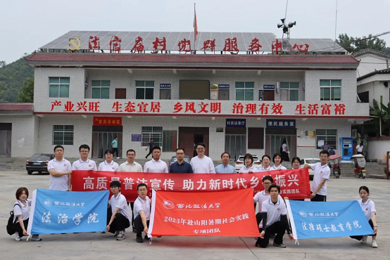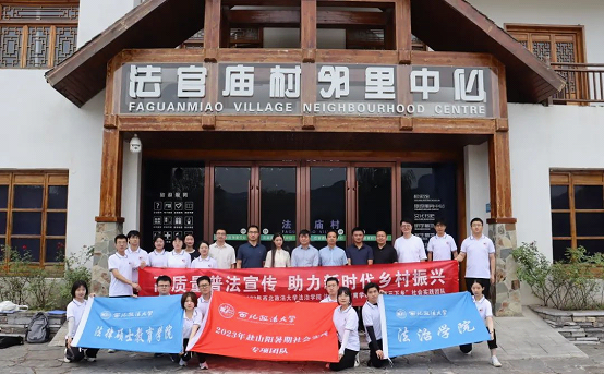 为了深入了解基层法治建设现状以及更好开展高质量普法宣传为乡村振兴提供法律服务和法治保障,2023年7月18日,西北政法大学欧乐影视 社会实践团队在中华法系与法治文明研究院执行院长、枫桥经验与社会治理研究院副院长、欧乐影视 副教授王斌通、欧乐影视 团委书记李谦盛老师、欧乐影视 辅导员马军强老师的带领下,前往山阳县法官镇法官庙村开展专题调研并进行普法宣传活动,山阳县综治中心主任郭有锋、法官镇镇长黄铭、副镇长汪辉、综治中心干部毛霞全程陪同。