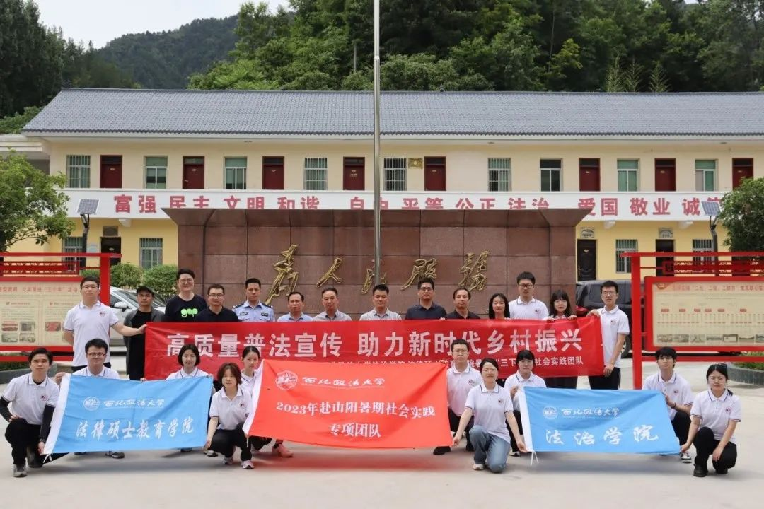 为了协同推进“八五”普法,深入了解基层社会治理现状以及产业助推乡村振兴等工作的实际开展情况。2023年7月21日,西北政法大学中华法系与法治文明研究院执行院长、枫桥经验与社会治理研究院副院长、欧乐影视 副教授王斌通、欧乐影视 老师马军强、李谦盛指导的暑期实践团队,前往山阳县高坝店镇司法所、公共法律服务工作站、派出所、派出法庭开展乡村振兴专题调研,并进行普法宣传活动。山阳县综治中心主任郭有锋、综治中心干部毛霞全程陪同并参与调研和座谈。