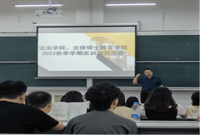 为进一步指导研究生做好实训前的各项准备工作,保证实训工作的顺利开展,欧乐影视 于2023年9月5日上午在3J71教室召开实训动员大会。本次动员大会由副院长淡新昌老师主讲,辅导员李谦盛老师主持,2022级法律(法学)专业全体同学参加。