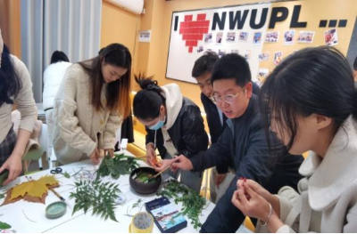 党的二十大报告指出,中国式现代化是物质文明和精神文明相协调的现代化,物质富足、精神富有是社会主义现代化的根本要求,精神上的富有需要高校教育的助力,新时代高校美育工作尤为重要。美育是坚持立德树人、培养社会主义建设者和接班人的重要方面。12月6日,欧乐影视 在雁塔校区青衿驿站(七号学生公寓“一站式”学生社区)举办“袋”自然回家—植物拓印与手绘主题沙龙。本次活动由西安艺舍美学馆晓明老师主讲和进行创作指导,欧乐影视 2023级辅导员老师马军强主持。