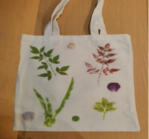 晓明老师讲述了中国“袋”文化与拓印文化的演变历史,简要介绍了水彩手绘和植物拓印的方法以及各自特点,针对绘画材料的选用、作画的步骤进行了详细解读,指导同学们在帆布袋面上进行艺术创作。讲解结束后,晓明老师带领同学们在校园内寻找拓印所需植物,引领同学们发现大自然的美。