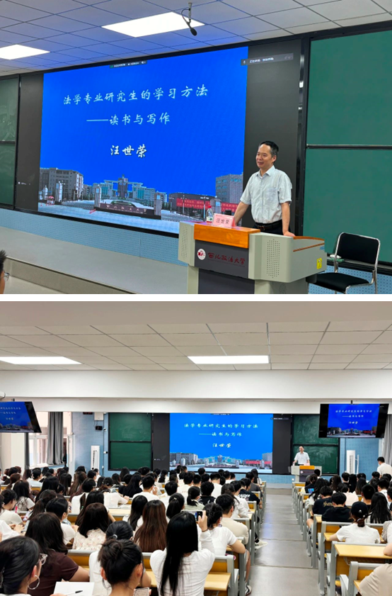 汪世荣教授以《法学专业研究生的学习方法》为题为新生讲授了“新生第一课”。他向全体同学介绍了学习计划的作用及重要性,希望同学们能从现在做起,从小事做起,确保计划得到有效执行,阐释了阅读与写作之间的关系,分享了阅读与写作的技巧与方法,他鼓励同学们彼此加强讨论与交流,激发思维碰撞,养成终身学习的好习惯。