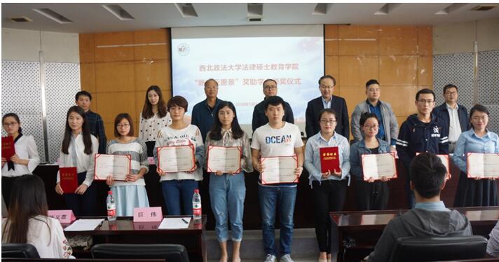 “新视云愿景奖助学金”颁奖仪式于2018年5月11日下午在我校研综楼四楼报告厅顺利举行。江苏新视云科技股份有限公司,即新浪网司法频道,于2018年向法硕学院捐资5万元,用于奖励品学兼优,且家庭经济困难的在校研究生。