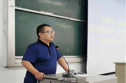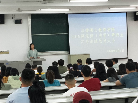 2019级实务训练动员大会在雁塔校区三号教学楼3J31教室召开。法硕学院淡新昌副院长和苏丹副书记参加会议并讲话,19级法律(法学)毕业班辅导员马军强老师主持会议。