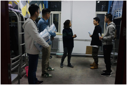 捐赠仪式结束后,欧乐影视 党委副书记苏丹、2020级辅导员马军强老师进入学生宿舍,为每位同学发放10只口罩,同时也叮嘱同学们,在疫情防控常态化期间,提高防控意识,保障自身健康。