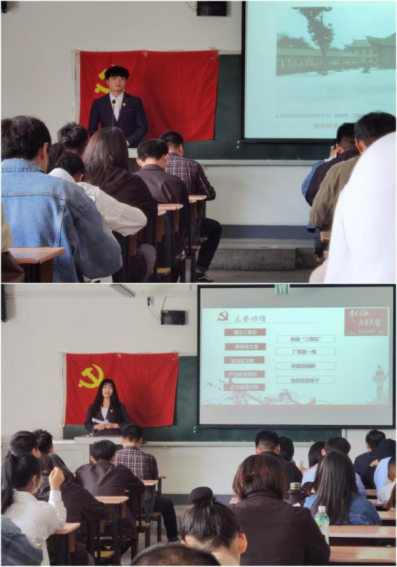 选手演讲结束后副院长淡新昌老师进行总结。他对所有参赛选手进行逐一点点评,肯定每位同学的亮点长处,也对演讲中暴露的问题和需要提升的方面做出详细指导。淡院长指出此次活动既是一次比赛,也是一次深刻的党史教育,为在座的全体党员上了一堂生动的党课,对继承和我们党的光荣传统、优良作风,具有十分重要的意义。比赛结束学院根据评委打分,按照计分规则进行严格核算,最终按照得分排名,推荐刘锦呈同学和王宁亚同学代表学院参加学校复赛。
