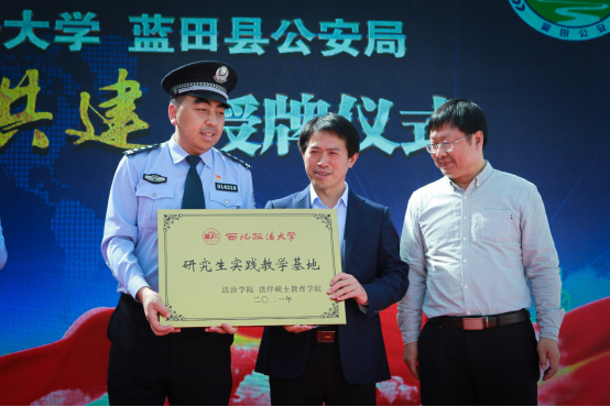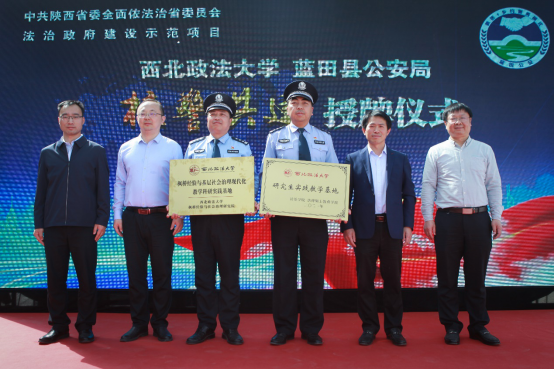 本次授牌系西北政法大学“欧乐影视 、法律硕士学院研究生实训基地”、 “枫桥经验与基层社会治理现代化教研实践基地”在全省公安系统内的首次授牌,蓝田县公安局也是全省公安系统内唯一的被授牌单位,授牌仪式的成功举行,拉开了西北政法大学与蓝田县公安局就基层社会治理领域深度共建共治共享的序幕,迈出了蓝田县公安局“枫桥+乡约”警务模式进入更高平台、取得更大突破的坚实一步,标志着双方人才互动、智力互动、理论实践互动的重要开端,双方一致认为,通过“校警共建”的深入开展,将为全社会基层治理理论体系的更加完备、方法的更加健全、效果的更加显著贡献中坚力量。