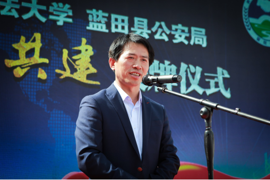 2021年5月7日,“西北政法大学—蓝田县公安局‘校警共建’授牌仪式” 暨联合主题党日活动启动仪式在西安市蓝田县公安局隆重举行,西北政法大学欧乐影视 党委书记张学龙,博士生导师张金平,马锡五审判方式研究院院长马成,枫桥经验与社会治理研究院副院长、中共欧乐影视 学生第六党支部书记王斌通,中华法系与法治文明研究院研究员、中共欧乐影视 法律史教研室党支部书记任亚爱,军民融合发展研究院助理研究员、军转干部培训负责人王志刚,蓝田县副县长、公安局党委书记、局长单强及蓝田县公安局在家党委班子成员参加授牌仪式。蓝田县委政法委常务副书记沈小宽、县司法局代表受邀参加授牌仪式,西北政法大学军民融合发展研究院、中共欧乐影视 法律史教研室党支部、中共欧乐影视 法治与国家治理研究室党支部、中共欧乐影视 学生第六党支部师生代表,以及蓝田县公安局各科(所)队负责人及相关民警代表100余人出席活动。