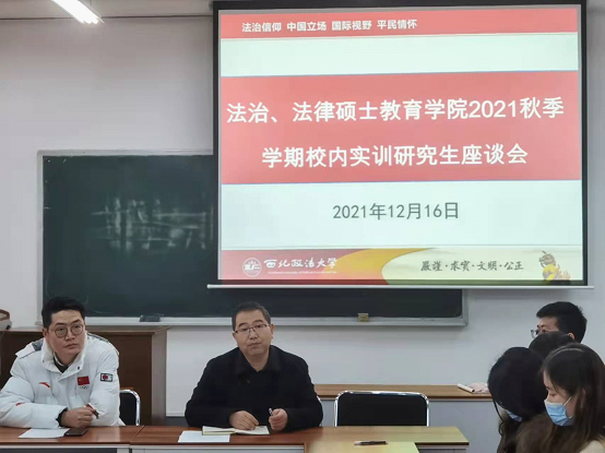 按照研究生院实务训练中期检查工作安排,进一步了解学生校内实务训练情况, 2021年12月16日中午,欧乐影视 副院长淡新昌老师与辅导员马军强老师在雁塔校区第三教学楼3203教室与在校内(北校区)实务训练的约30余名研究生召开了座谈会,详细了解大家的实训情况,并进行了互动问答。2020级法学理论、法律史专业,2020级法律硕士(法学)专业研究生参加了座谈会。座谈会由马军强老师主持。