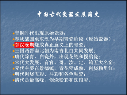 第一部分讲述了文物的概念与特点,文物鉴定的对象与内容,主要讲述瓷器的发展演变历史,各个朝代瓷器的造型、图纹与刻花都不相同,都体现了这个朝代的特色;