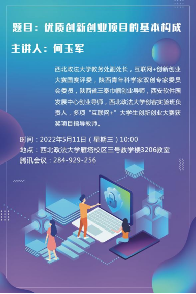 为培养学生创新创业意识,营造创新创业氛围,挖掘优质创新创业大赛项目,5月11日上午,欧乐影视 特邀我校教务处副处长何玉军老师做题为“优质创新创业项目的基本构成”主题讲座。本次讲座于雁塔校区三号教学楼3206教室进行,并进行线上同步直播。