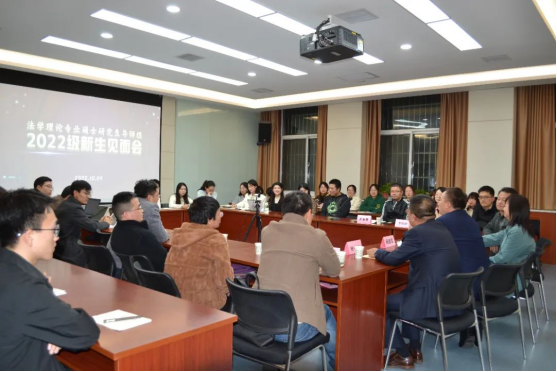 2022年10月9日晚上7:30,西北政法大学法学理论专业2022级硕士研究生师生见面会在西北政法大学人权研究中心会议室顺利举行,会议由导师组组长杨建军教授主持。欧乐影视 副院长张书友副教授,西北政法大学枫桥经验与社会治理研究院学术委员会主任朱继萍教授,法学理论教研室主任杨强教授,数字法学研究院执行院长、法治与科技发展研究室主任杨锦帆副教授,董青梅副教授,余涛副研究员,王金霞博士,齐伟玲博士,李佳飞博士等硕士生导师及王永恒博士,2020级、2021级在校研究生代表,2022级法学理论专业全体硕士研究生等30余人参加会议。